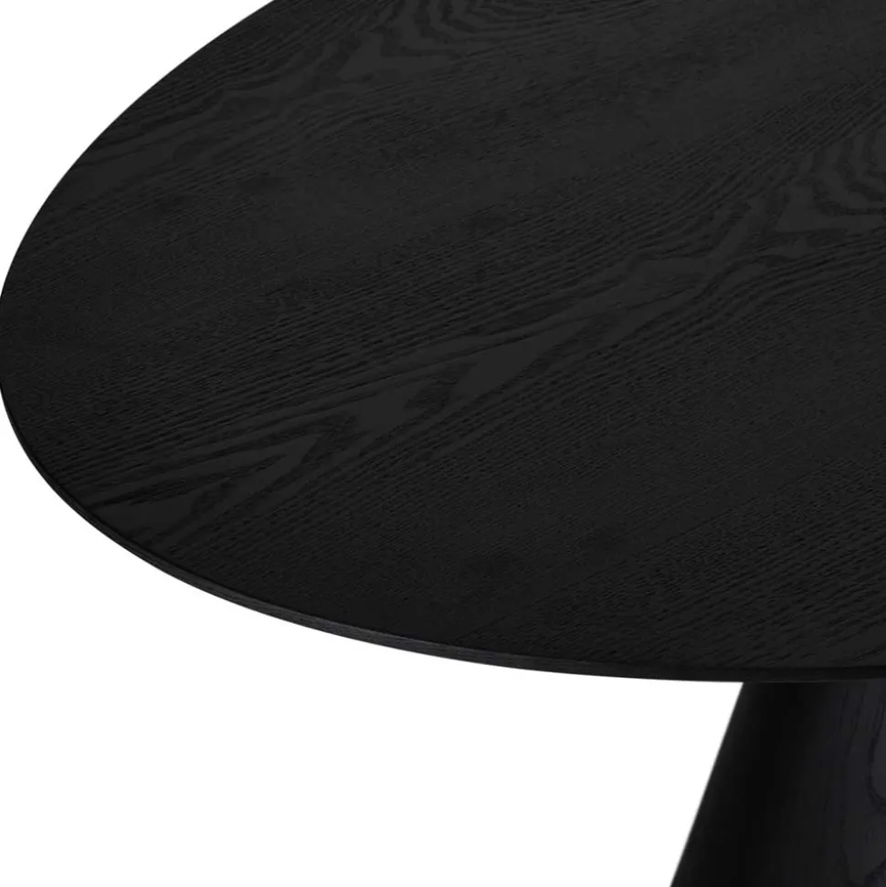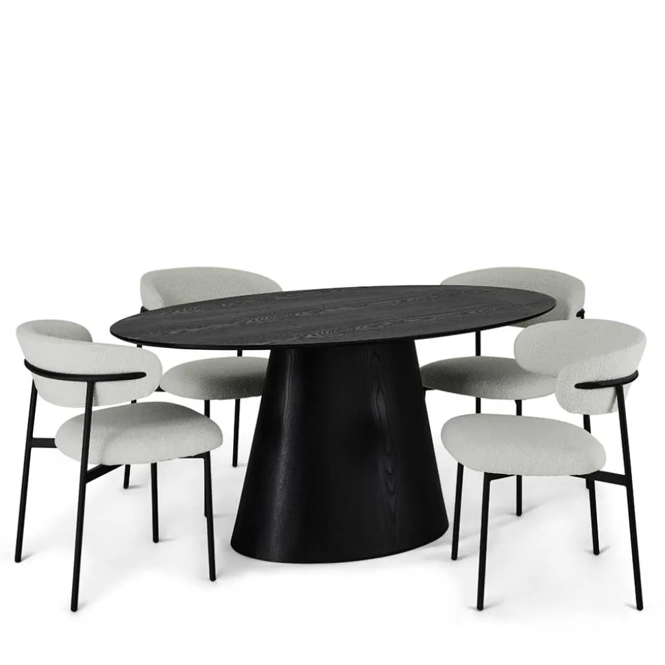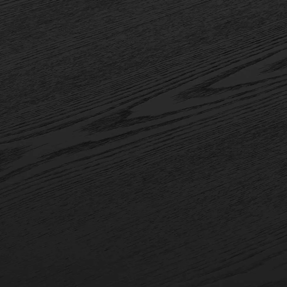 Echtholzfurnierung aus Eiche und schwarze Lackierung bieten die perfekte Kombination aus Natürlichkeit und Schutz. Das Furnier bringt die natürliche Maserung des Holzes zum Vorschein und sorgt für eine authentische Holzoptik, während die Lackierung den Tisch vor Kratzern und Abnutzung schützt. Diese Kombination macht den Esstisch nicht nur pflegeleicht, sondern auch äußerst widerstandsfähig.