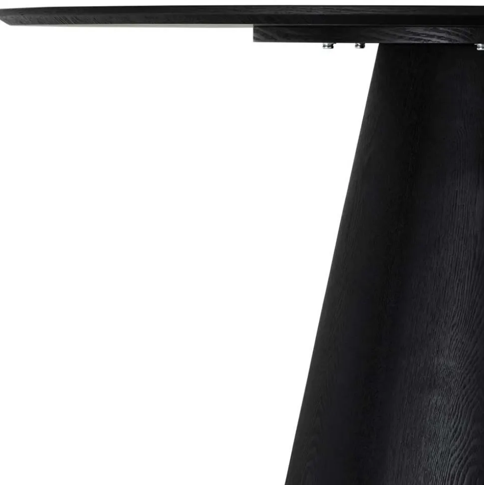 Ein Kegelförmiges Sockelgestell garantiert Stabilität und gleichzeitig ein modernes Design. Das Gestell sorgt nicht nur für einen sicheren Stand, sondern verleiht dem Tisch auch eine leichte, elegante Erscheinung, die perfekt zu den klaren Linien des Tischs passt. So wird der Esstisch „Vuschea“ zu einem stabilen wie stilvollen Begleiter in Ihrem Zuhause.