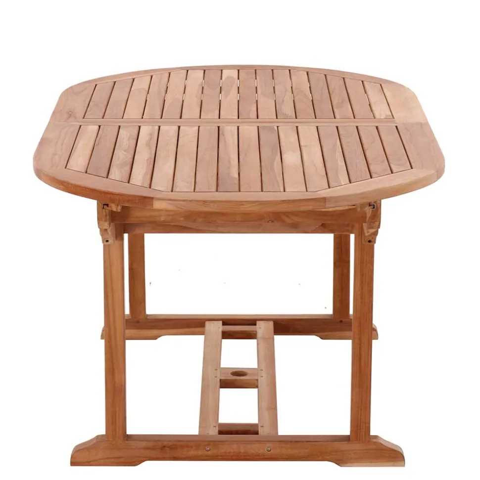 Ein weiteres Highlight des Gartentisches ist die spezielle Öffnung im Auszug, die Platz für einen Sonnenschirm bietet (Durchmesser ca. 5 cm). So können Sie den Tisch auch an sonnigen Tagen bequem im Schatten genießen. Die Öffnung ist unauffällig und beeinträchtigt nicht das Design des Tisches, sondern fügt sich harmonisch in die gesamte Konstruktion ein.