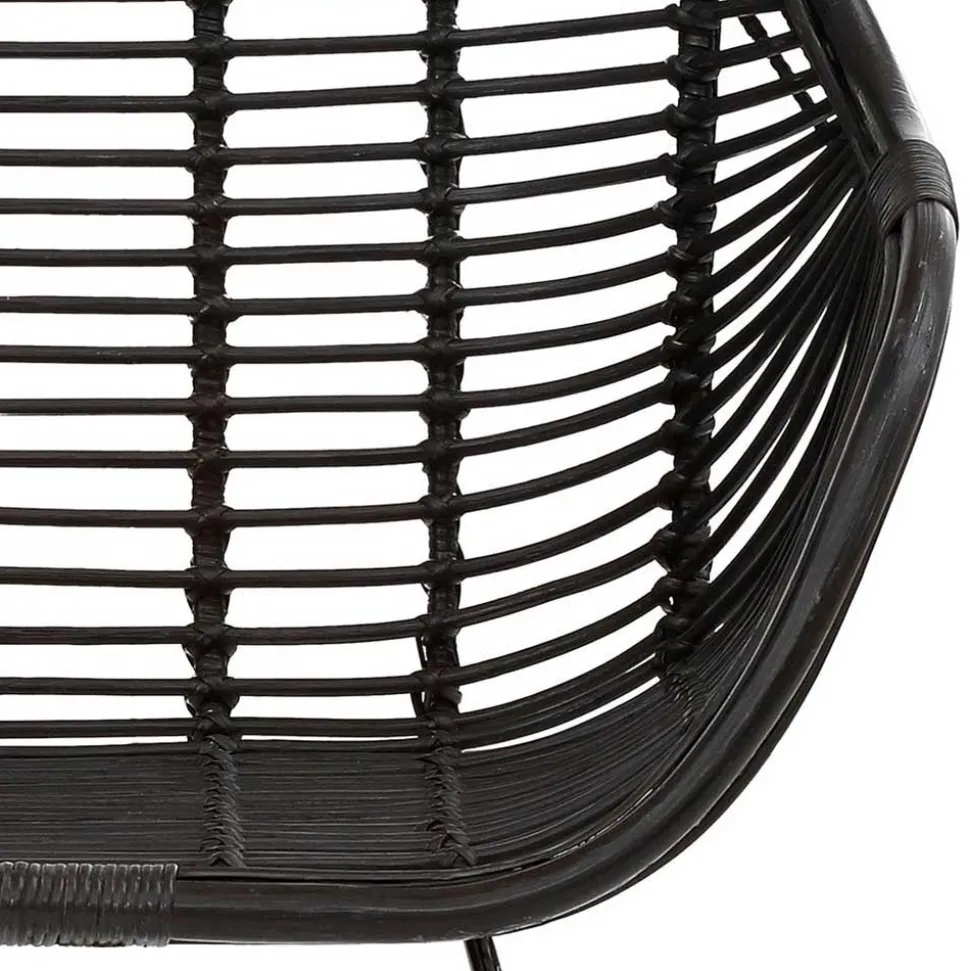 Rattan und Metall – ein Duo, das sich nicht nur optisch hervorragend ergänzt, sondern auch funktional überzeugt. Das von Hand verarbeitete Rattangeflecht verleiht dem Bregenza-Stuhl eine warme, natürliche Ausstrahlung. Rattan gilt als besonders leicht, flexibel und dabei enorm robust – ein echtes Naturprodukt mit Charakter. Durch die schwarze Lackierung wird die edle Struktur betont und zusätzlich geschützt. Das Metallgestell, ebenfalls schwarz lackiert, sorgt für Stabilität und ein modernes Finish. Die Querstreben verstärken die Konstruktion, während Bodenschoner Ihre Böden zuverlässig schützen.