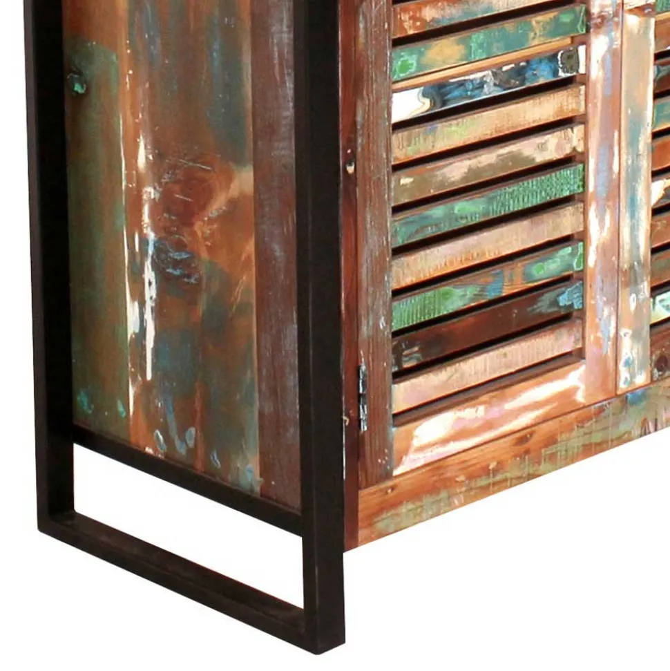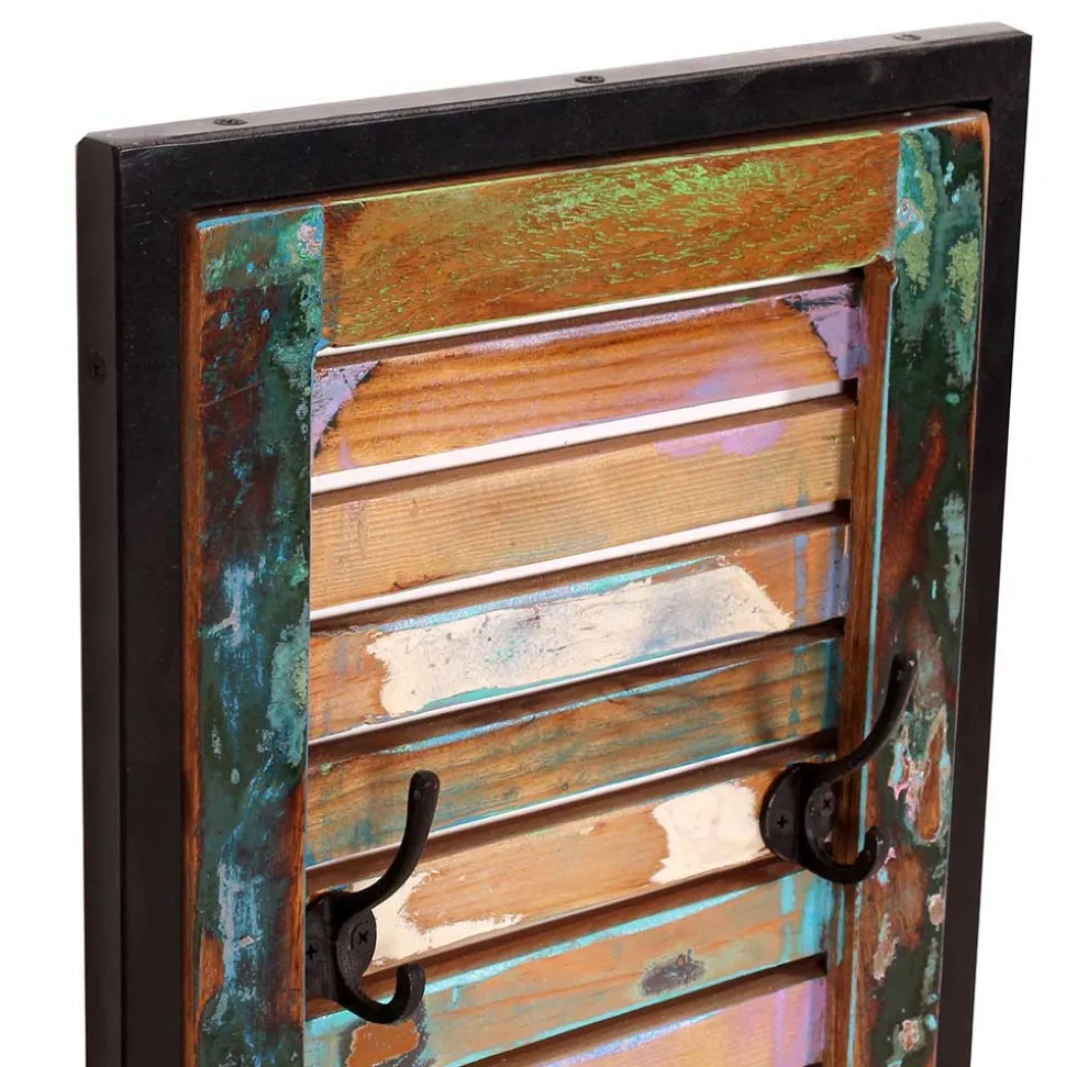 Jedes Möbelstück des Sets wird aus Recyclingholz und Altmetall gefertigt, was nicht nur der Umwelt zugutekommt, sondern auch den einzigartigen Charakter jedes Stücks hervorhebt. Das verwendete Recyclingholz bringt eine natürliche Patina und farbenfrohe Lackreste mit, die jede Garderobe zu einem echten Unikat machen. Die Kombination aus aufgearbeitetem Altmetall und bunten Oberflächen verleiht den Möbeln eine rustikale und zugleich künstlerische Note.