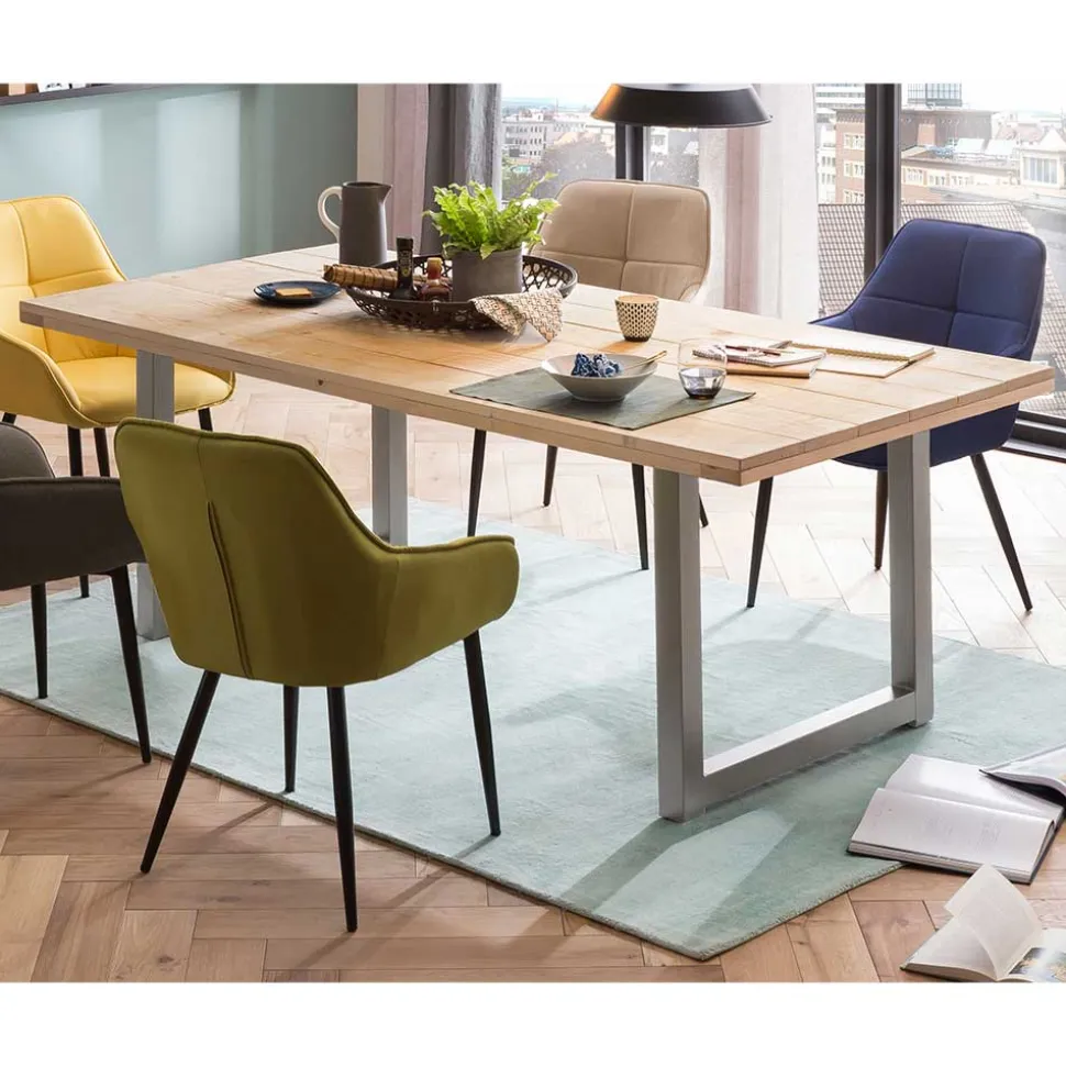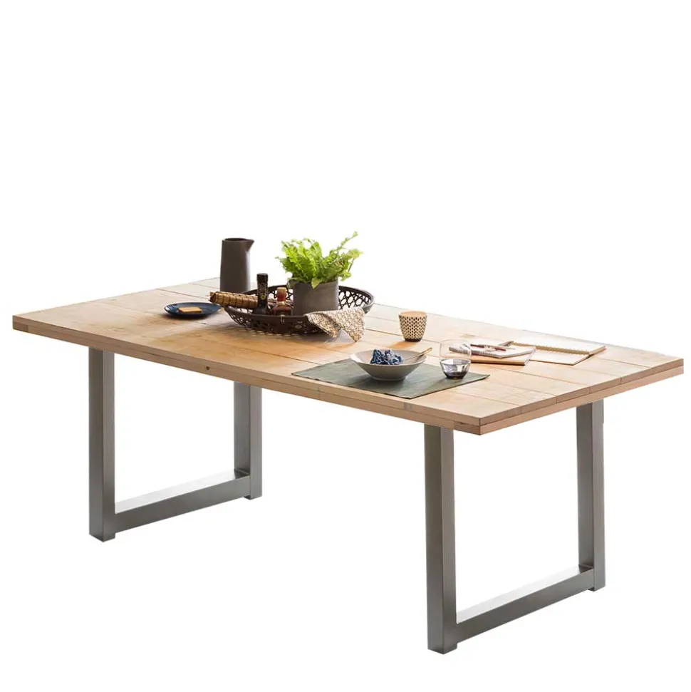- Trendiger Esstisch in Holz Naturfarben und Altsilber