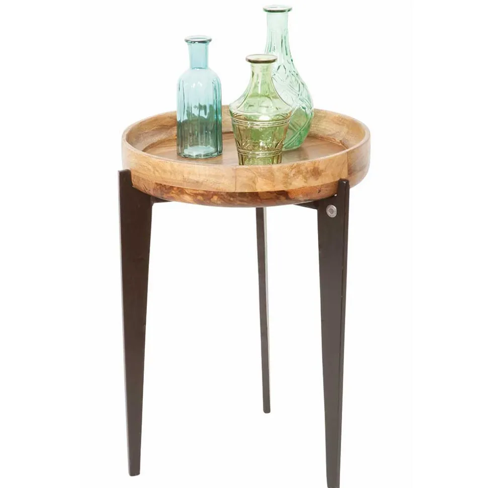 - Praktischer Beistelltisch in Mangoholz Naturfarben und Schwarz