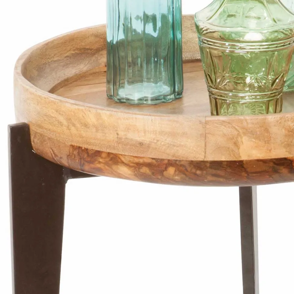 Mangobaumholz ist nicht nur für seine Haltbarkeit und Festigkeit bekannt, sondern besticht auch durch seine umwerfende Ästhetik. Die natürliche Maserung und die lebhaften Farbschattierungen des Holzes kommen durch eine sorgfältige, naturfarbene Lackierung besonders gut zur Geltung, die nicht nur schützt, sondern auch das Erscheinungsbild veredelt. Das Dreifußgestell aus Metall bietet Stabilität und fügt sich nahtlos in das Gesamtbild ein, während die schwarze Lackierung einen modernen Kontrast schafft.