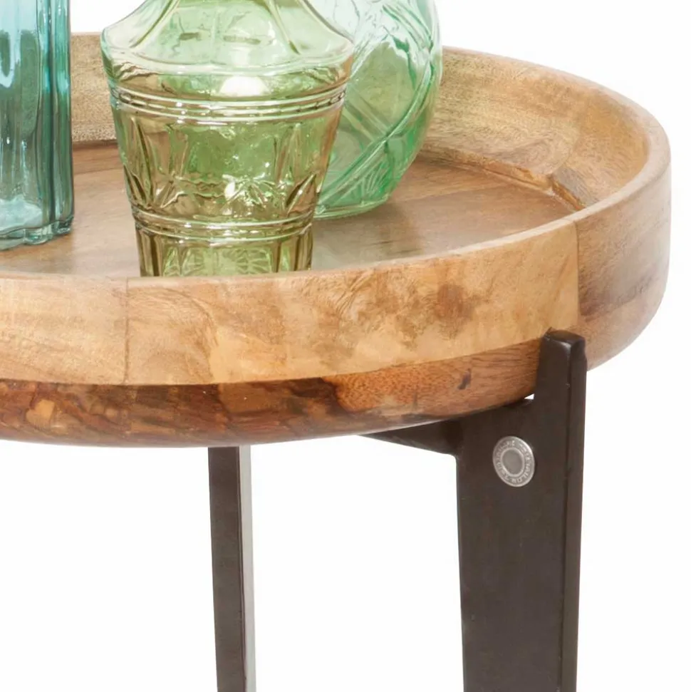 Verleihen Sie Ihrem Wohn- oder Essbereich einen Hauch von industrieller Eleganz mit dem Beistelltisch „Offia“. Inspiriert durch den robusten Charme urbaner Loft-Wohnungen und die klare Funktionalität industrieller Designelemente, kombiniert dieser Tisch Stil und Substanz in Perfektion. Ein Meisterwerk der Handwerkskunst, gefertigt aus massivem Mangobaumholz und ergänzt durch ein markantes, schwarz lackiertes Dreifußgestell.
