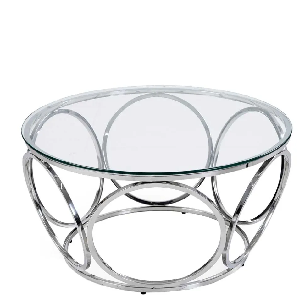 - Eleganter Couchtisch in Silberfarben und Transparent