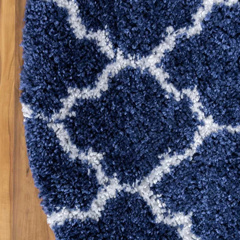 Der runde Teppich mit hohem Flor „Cranita“ bringt mit seiner charmanten Kombination aus Dunkelblau und Cremeweiß eine stilvolle Ruhe in Ihre Wohnräume. Das reizvolle Kachelmuster auf dem dunkelblauen Grund wirkt grafisch und zugleich wohnlich – ideal für skandinavisch inspirierte Einrichtungen, moderne Wohnkonzepte oder als textiler Akzent in klassisch eingerichteten Räumen. Seine runde Form sorgt für harmonische Übergänge und macht „Cranita“ zum dekorativen Mittelpunkt in Wohn- oder Schlafbereichen.