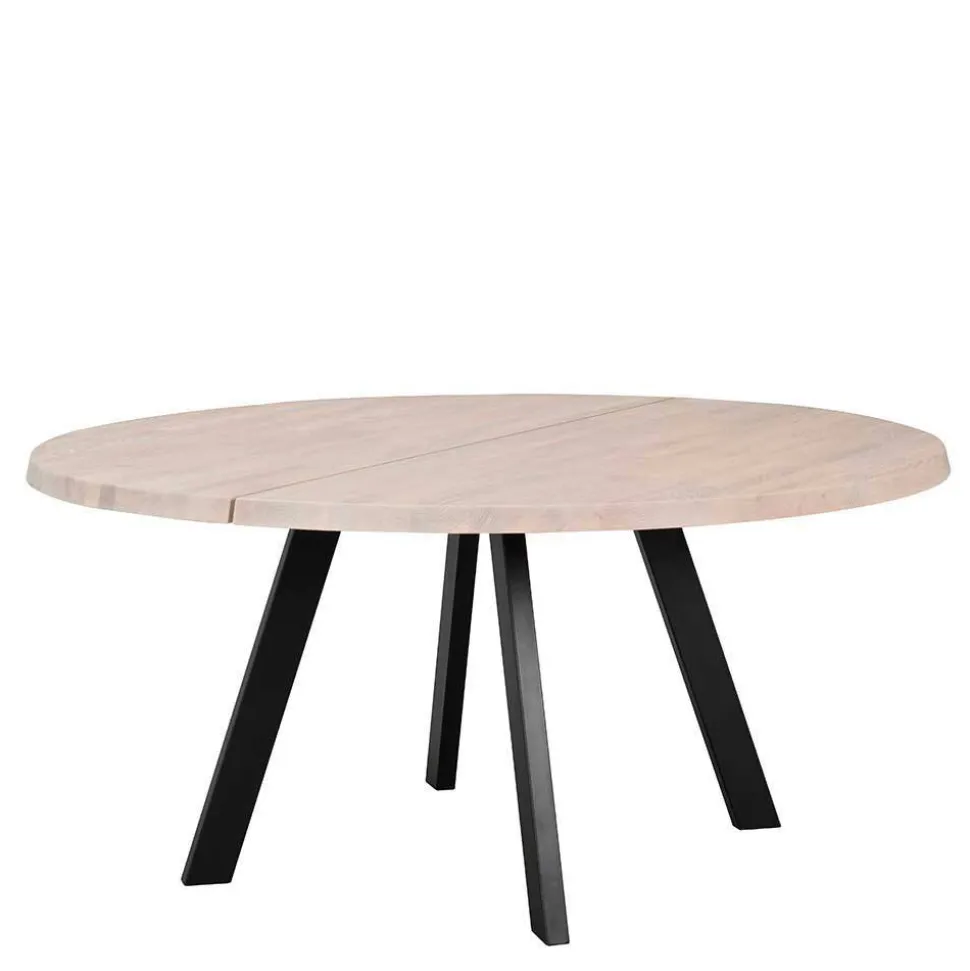 Die Tischplatte ist in einer eleganten White Wash Optik matt lackiert, wodurch die lebhafte Maserung des Holzes perfekt zur Geltung kommt. Diese Lackierung schützt das Holz und macht die Oberfläche besonders pflegeleicht und widerstandsfähig gegen alltägliche Beanspruchungen. Mit einer Breite und Tiefe von 160 cm sowie einer Höhe von 75 cm bietet der Tisch reichlich Platz für gesellige Abende mit Familie und Freunden. Die zweigeteilte Tischplatte aus massivem Holz hat eine beeindruckende Stärke von bis zu 4 cm, was ihre hohe Qualität unterstreicht. Das schwarz lackierte Vierfußgestell sorgt nicht nur für einen stabilen Stand, sondern setzt auch einen stilvollen Kontrast zur hellen Tischplatte. Der Abstand zwischen den Tischbeinen beträgt ca. 51 cm, was ausreichend Beinfreiheit bietet.