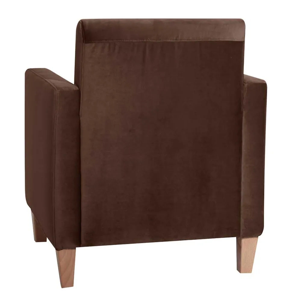 Die gerade Armlehnen mit einer Innenhöhe von ca. 20 cm bieten zusätzlichen Komfort. Der Rücken des Sessels ist echt bezogen, sodass Sie „Enroya“ frei im Raum platzieren können. Die trapezförmigen Füße aus lackiertem Buchenholz verleihen dem Sessel eine elegante Note und bieten eine Bodenfreiheit von ca. 10 cm. Buchenholz zeichnet sich durch seine Härte und Beständigkeit aus, was diese Holzart besonders langlebig und robust macht. Mit einer Belastbarkeit von bis zu 120 kg ist „Enroya“ für jede Anforderung gewappnet.