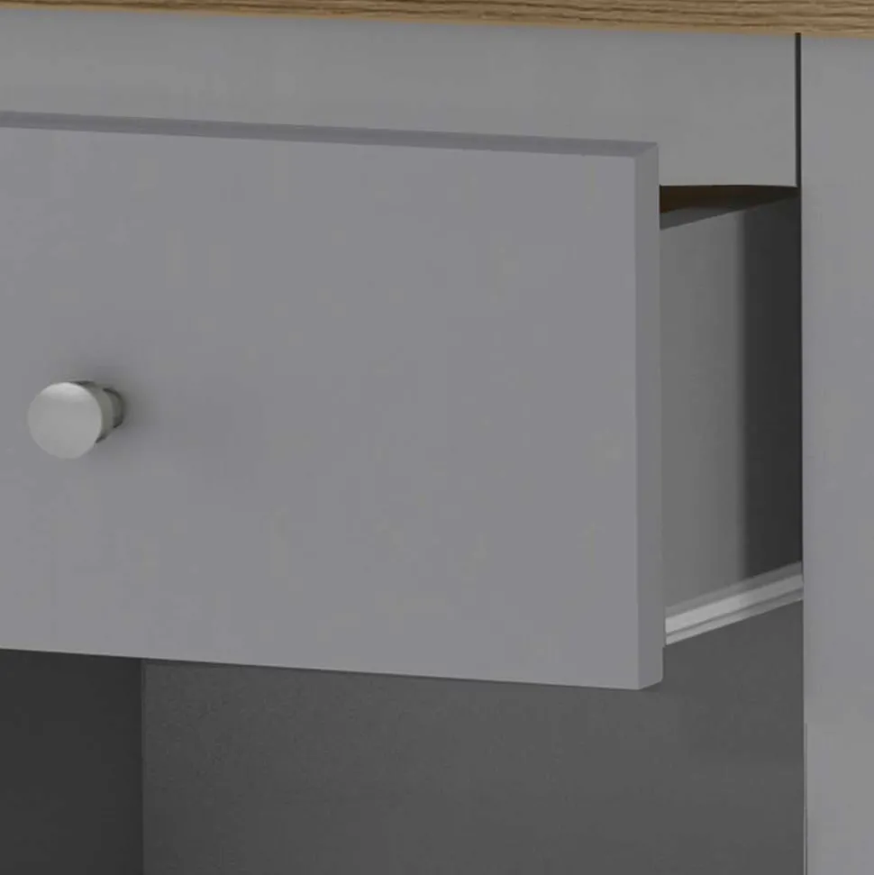 - Praktische Nachtkommode in Grau und Eichefarben