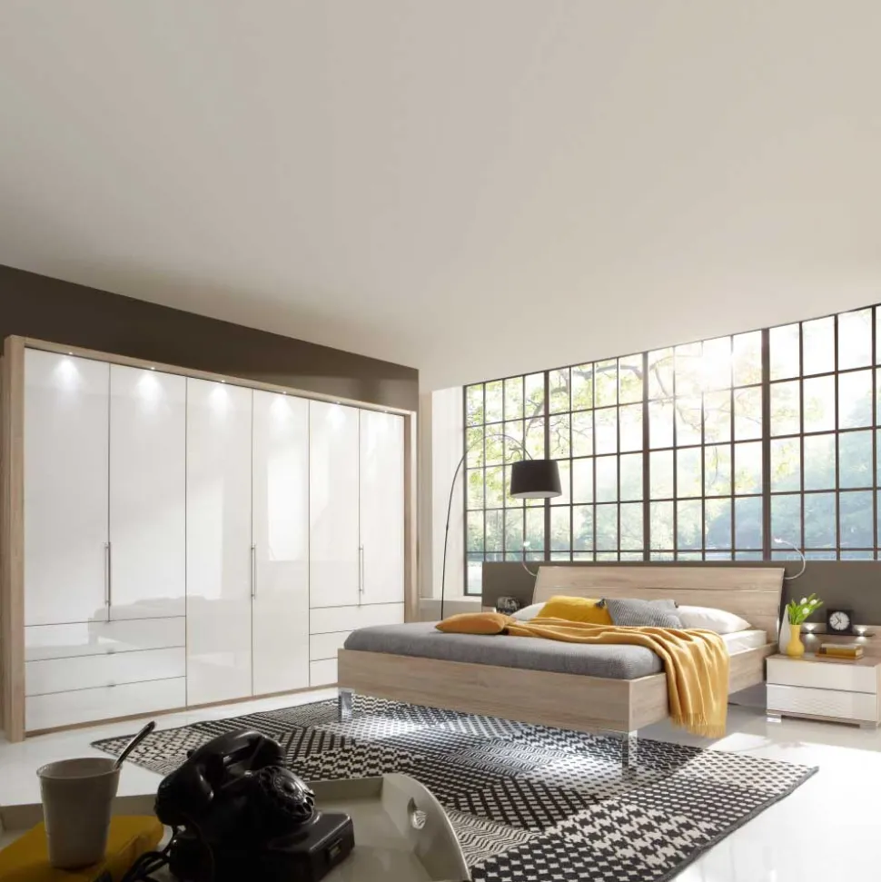 - Wunderschöne Schlafzimmerkombination in Cremeweiß und Sonoma Eiche