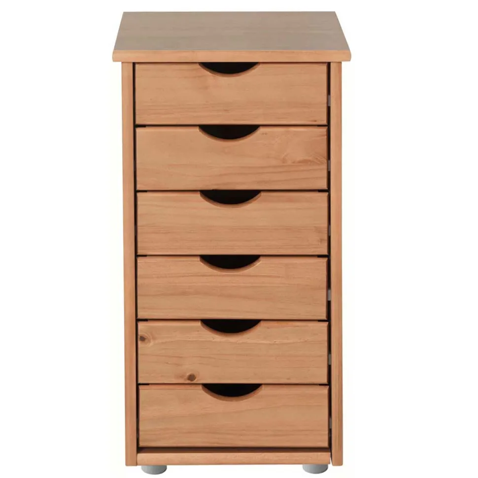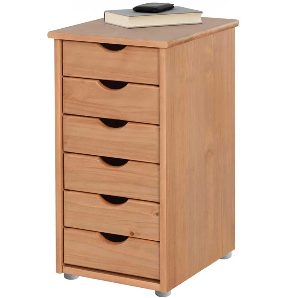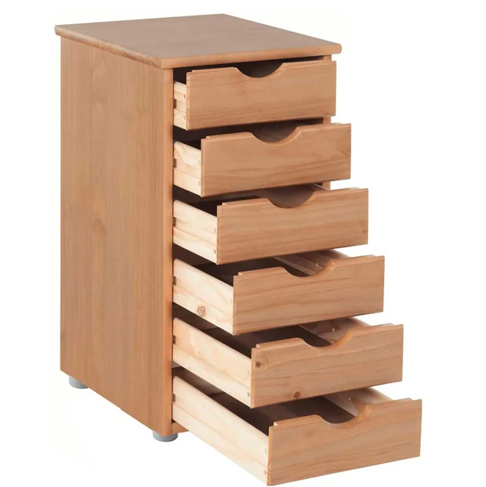 Schmale Kiefernholz Kommode mit sechs Schubladen – Calpano