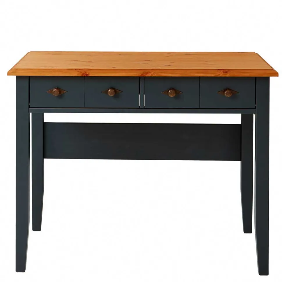 Der Schminktisch verfügt über eine massive Tischplatte mit einer Stärke von ca. 2,5 cm. Zwei Schubladen mit Metallauszug, gestaltet in einer charmanten Vier-Schubladen-Optik, bieten ausreichend Stauraum für Ihre Beauty-Produkte. Seiten und Böden der Schubkästen sowie die Möbelrückwand sind aus hochwertigem Sperrholz gefertigt.