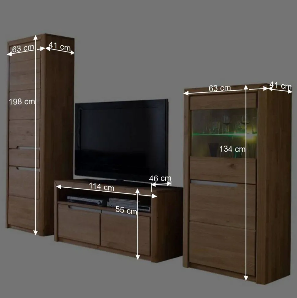 - Bestehend aus einem Schrank, einem TV-Lowboard und einer Vitrine