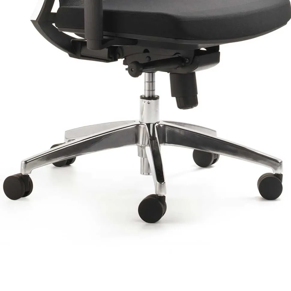 - Gepolsterte Sitzfläche, Netzrücken und ein Fußkreuz aus Aluminium