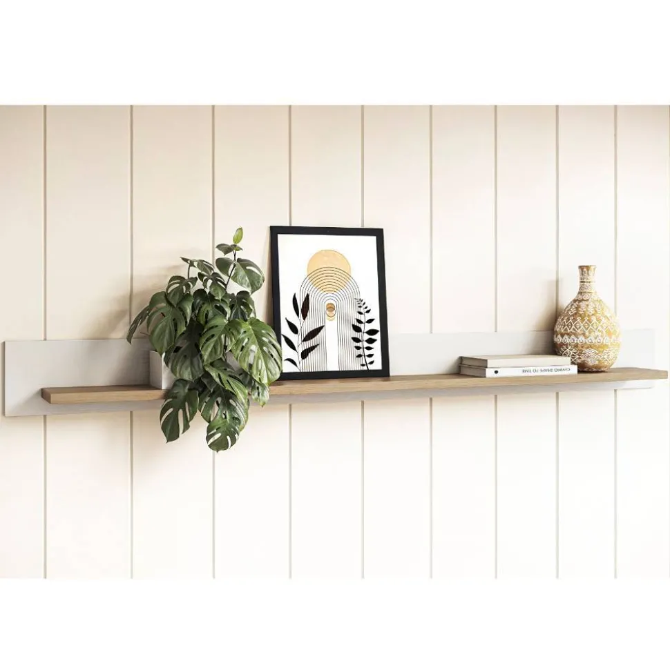 Das passende Wandboard (B/H/T: 150x17x17 cm) ergänzt den Schreibtisch ideal. Mit einer Ablagefläche von 134 cm Breite und 16 cm Tiefe bietet es ausreichend Platz für Bücher, Deko oder Arbeitsmaterialien. Die maximale Belastbarkeit von 3 kg sorgt für sichere Aufbewahrung – ein funktionales wie ästhetisches Element, das Ihren Arbeitsbereich optisch abrundet. Das Board wiegt etwa 7,5 kg und ist somit leicht, aber stabil.