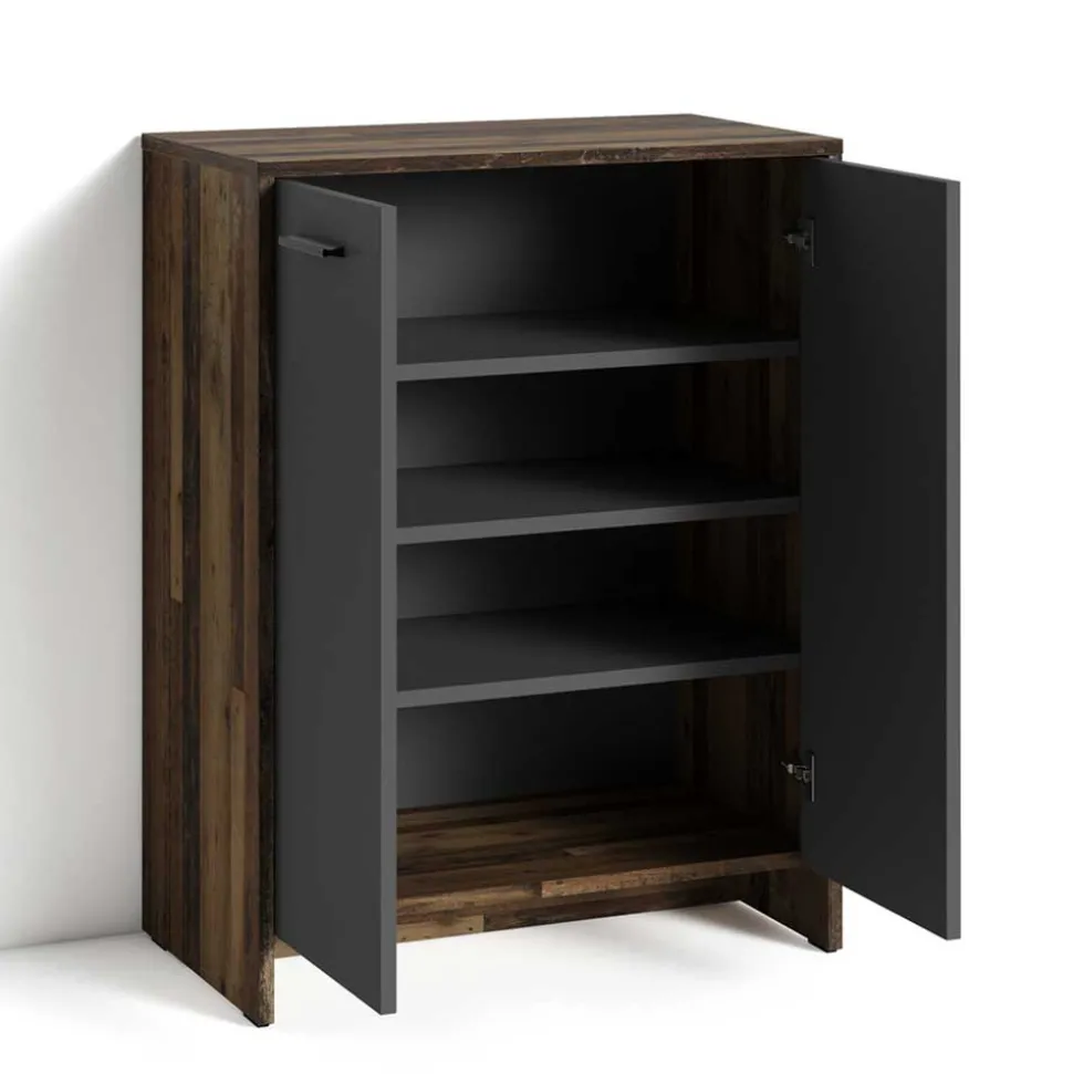- Geschmackvoller Schuhschrank in Altholzoptik und Anthrazit