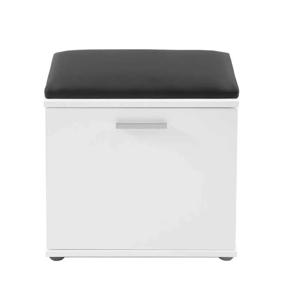 Die Schuhbank „Massa“ überzeugt durch hochwertige Materialien und sorgfältige Verarbeitung. Der pflegeleichte Kunstlederbezug aus 100 % Polyurethan in Schwarz setzt nicht nur optisch Akzente, sondern ist auch äußerst strapazierfähig. Die weißen Oberflächen sind melaminharzbeschichtet und verleihen der Bank eine edle Note.