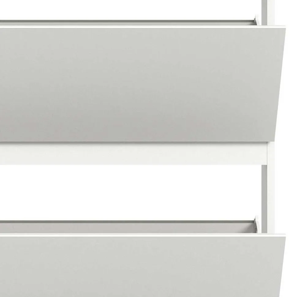 Gefertigt aus solider Spanplatte, bietet „Dany“ nicht nur eine hohe Stabilität, sondern ist auch äußerst langlebig. Spanplatten sind dafür bekannt, Druck gut zu verteilen und weniger anfällig für Verformungen zu sein. Das macht sie ideal für häufig genutzte Möbelstücke. Überzogen mit einer pflegeleichten weißen Folierung, ist der Schuhklapper zudem einfach zu reinigen und behält dauerhaft sein frisches Aussehen. Diese Folierung schützt ebenfalls vor Kratzern und sorgt für einen langanhaltenden Glanz.