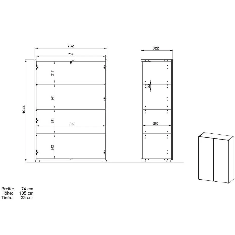 - Maße: BxHxT: 73,2×104,4×32,2 cm