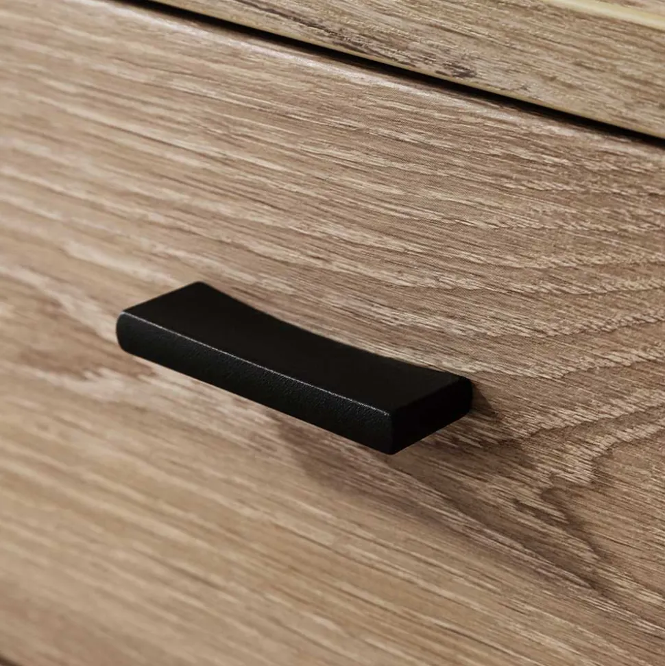 Der Schuhschrank „Baiamare“ besticht durch seine harmonische Kombination aus natürlicher Holzoptik und modernen Designelementen. Die Türfront-Applikationen in edlem Dunkelgrau setzen einen stilvollen Kontrast, während die dezent gerundeten Korpuskanten für ein besonders hochwertiges Erscheinungsbild sorgen. Die kleinen Metallgriffleisten in Anthrazit unterstreichen das minimalistische und zeitlose Design – ein Möbelstück, das sich mühelos in jedes Interieur einfügt.