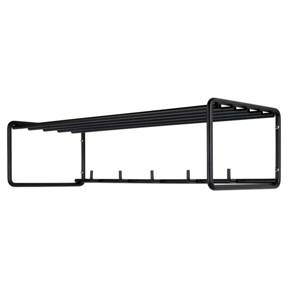 - Fünf Stangen bilden eine geräumige Hutablage an der auch zusätzliche Kleiderbügel Platz finden