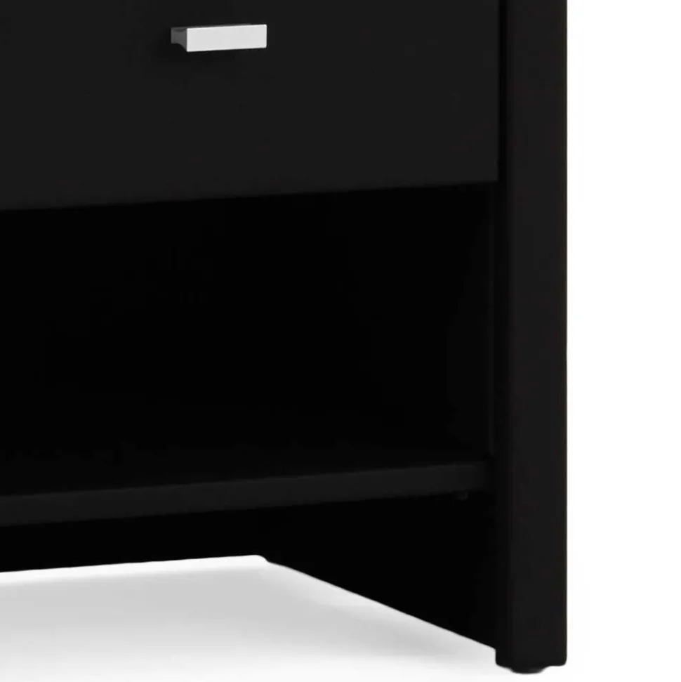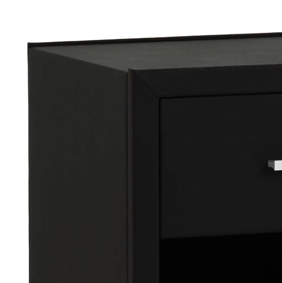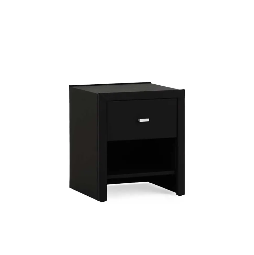 - Die gesamte Nachtkommode ist bezogen mit Struktur Webstoff (100 % Polyester) in Schwarz