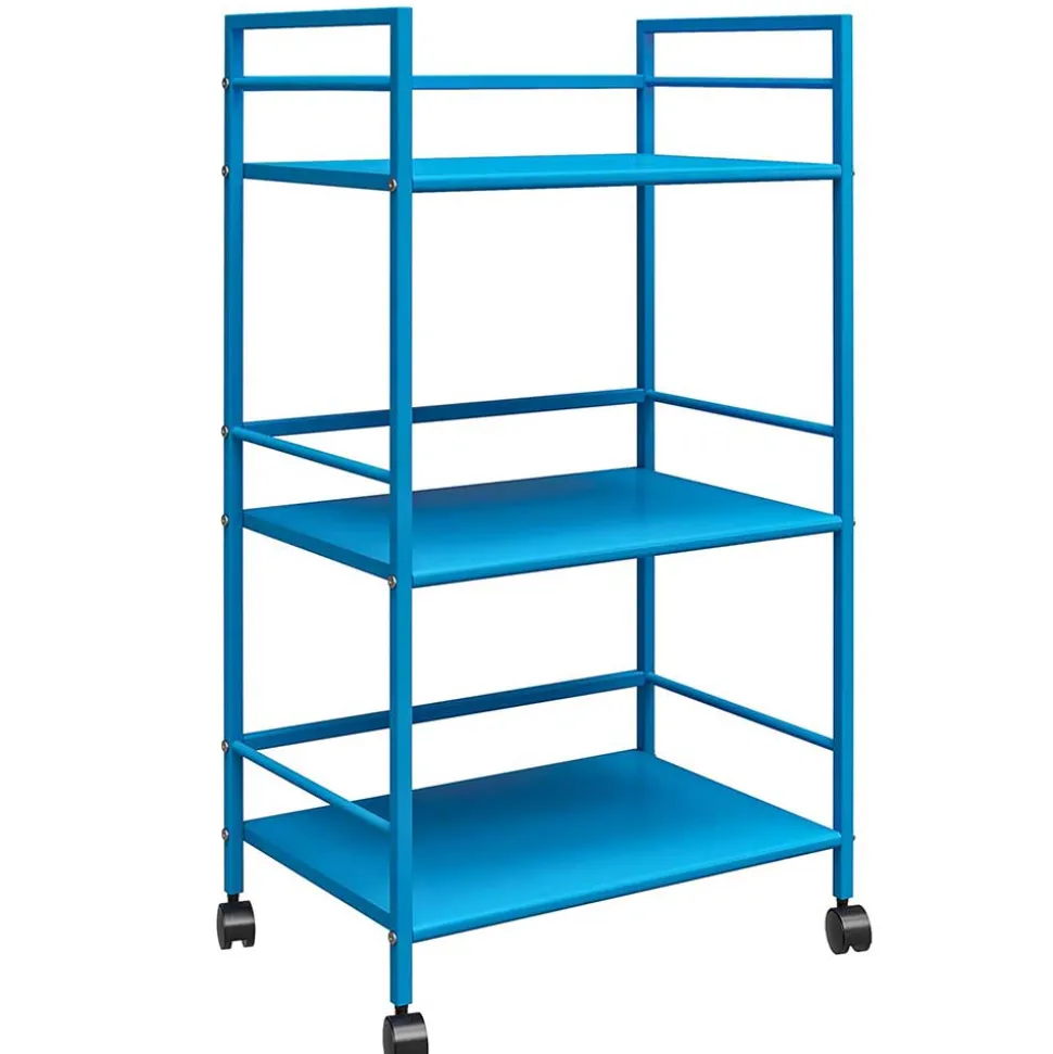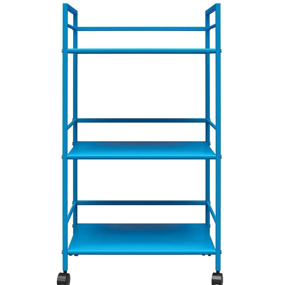 Die Oberfläche des Servierwagens ist pflegeleicht pulverbeschichtet und strahlt in lebendigem Türkis Blau. Die obere Reling dient nicht nur der Optik, sondern auch als praktischer Griff. Vier Kunststoffrollen, davon zwei arretierbar, sorgen für mühelose Mobilität. Die Platte aus Metall ist maximal bis zu 9 kg belastbar, während die dreiseitige Begrenzung der Böden für sicheren Halt sorgt. Zwei zusätzliche Ablagen bieten reichlich Stauraum, perfekt für Snacks, Getränke oder dekorative Elemente.