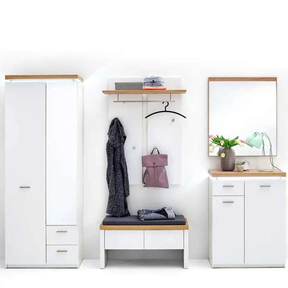 - Stimmige Garderobenkombination in Weiß und Wildeichefarben