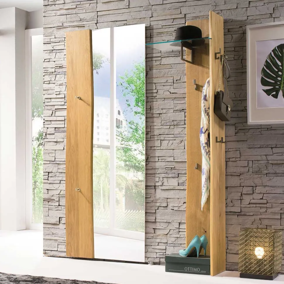 Das Garderoben-Set „Avidora“ besticht durch seine Verwendung von massivem Eichenholz, einem Naturmaterial, das für seine Langlebigkeit und Eleganz bekannt ist. Die Eiche zeichnet sich durch ihre charakteristische Maserung aus, die jedem Möbelstück einen einzigartigen, unverwechselbaren Look verleiht. Astlöcher und leichte Wuchsrisse können auftreten und verleihen Ihrem Garderoben-Set zusätzlichen Charme und Authentizität.