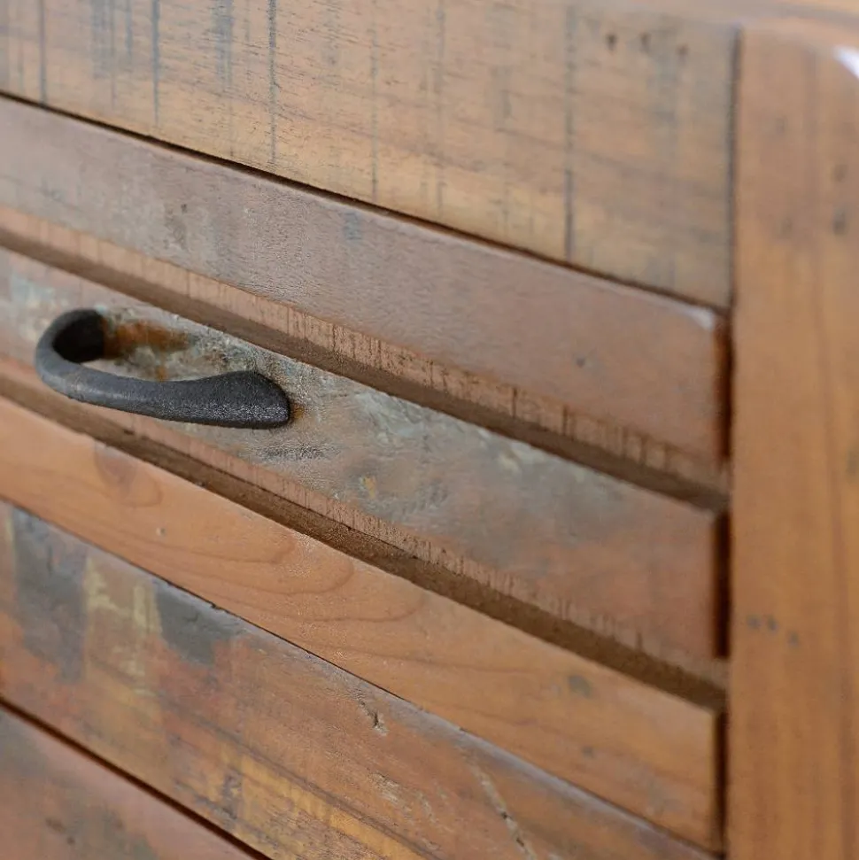 Gefertigt aus dem Holz alter Schiffwracks und ausgedienter Möbel, steckt in jeder Kommode ein Stück Vergangenheit. Dieses nachhaltige Recyclingholz bringt nicht nur eine beeindruckende Ökobilanz mit sich, sondern auch eine unvergleichliche Ausstrahlung. Die natürlichen Alterungsprozesse machen das Holz robust, langlebig und gleichzeitig voller Charakter. Kein Möbelstück gleicht dem anderen – jedes einzelne ist ein echtes Unikat mit eigenem Farbverlauf, individueller Maserung und einzigartiger Haptik.