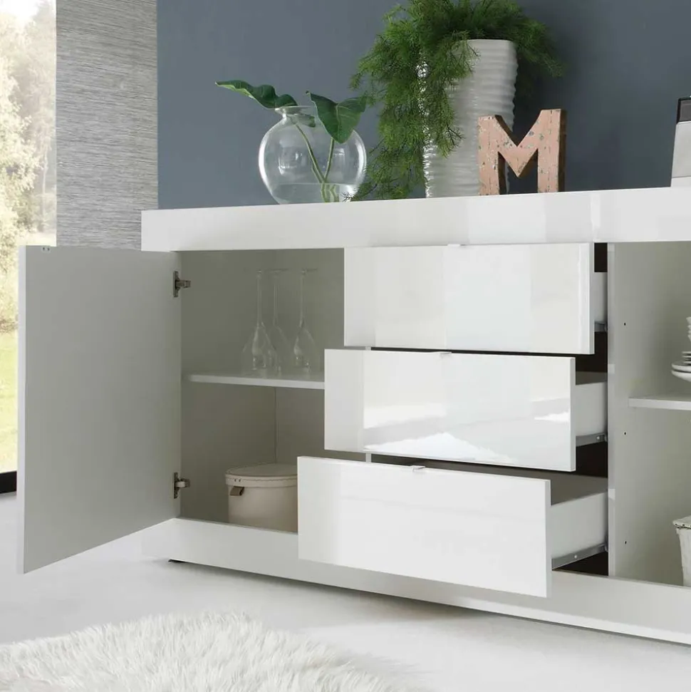 - Ansprechendes Sideboard in Hochglanz Weiß