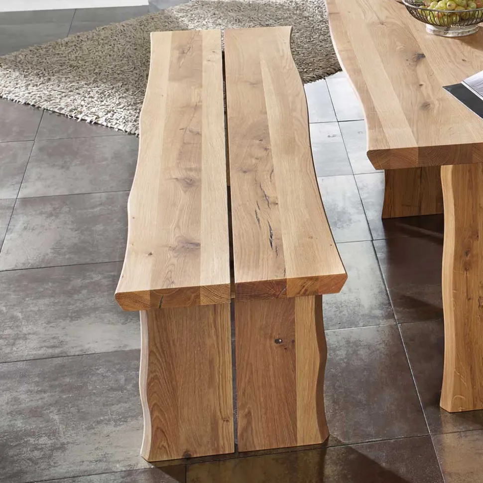 Massives Wildeichenholz bildet das Herzstück dieser Sitzgruppe. Bekannt für seine Härte, Stabilität und lebendige Maserung, bringt Wildeiche eine unverwechselbare Natürlichkeit mit sich. Durch eine sorgsame Ölbehandlung mit natürlichen Ölen wird die Holzoberfläche nicht nur geschützt, sondern auch in ihrer Struktur betont. Die geölte Oberfläche bleibt offenporig, atmungsaktiv und fasst sich angenehm warm an – ideal für ein wohngesundes Raumklima.