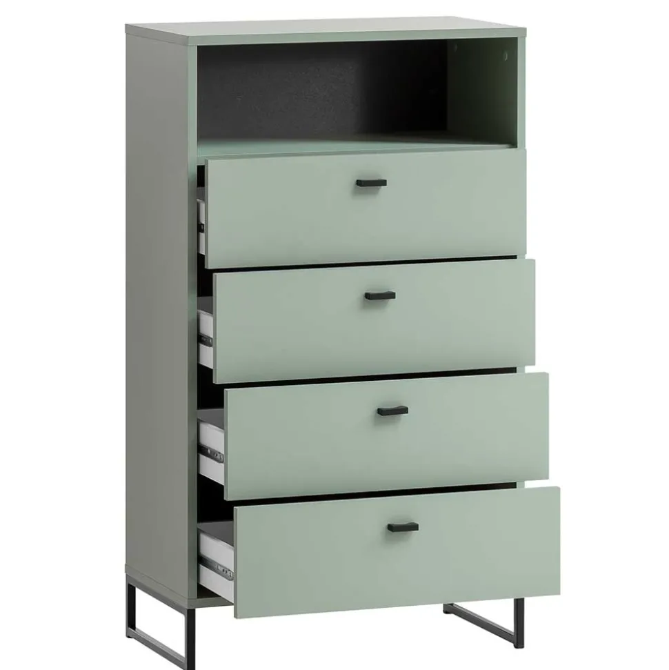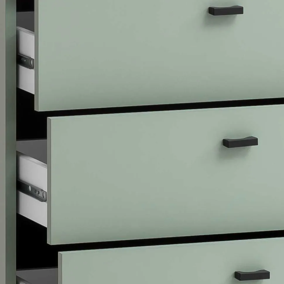 - Schicke Schubladenkommode in Graugrün und Schwarz