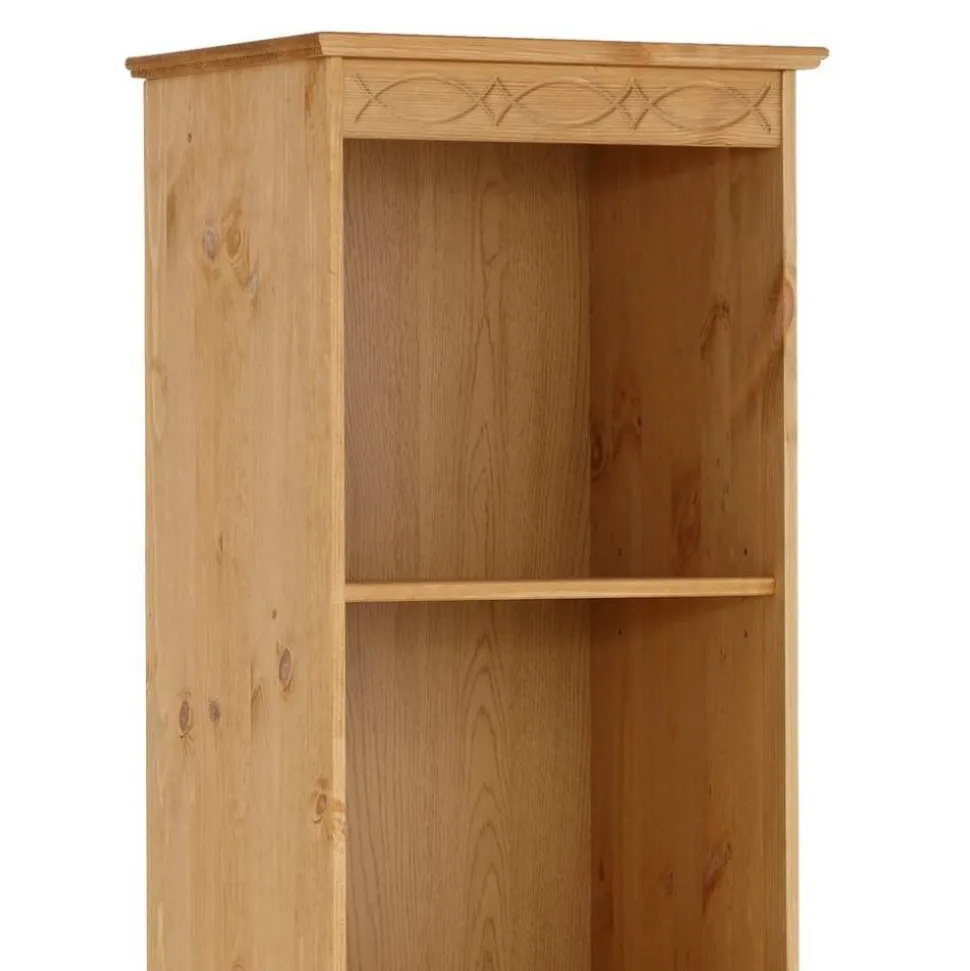 Mit seinen fünf offenen Fächern auf vier Einlegeböden bietet Goro großzügigen Stauraum für Bücher, Deko oder Alltagsgegenstände. Die dekorativen Zierfräsungen und die überstehende Deckleiste mit gefrästem Abschluss verleihen dem Regal eine unverwechselbare Ausstrahlung und unterstreichen den Charakter des Landhausstils. Auf dem soliden Sockel stehend, wirkt Goro stabil und präsent, und die schlanke Tiefe von nur 32 cm macht es zu einer platzsparenden Lösung für Wohnzimmer, Flur oder Küche.