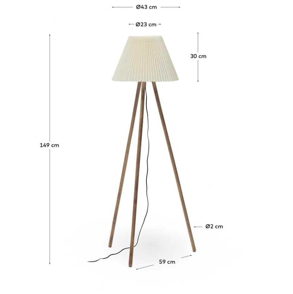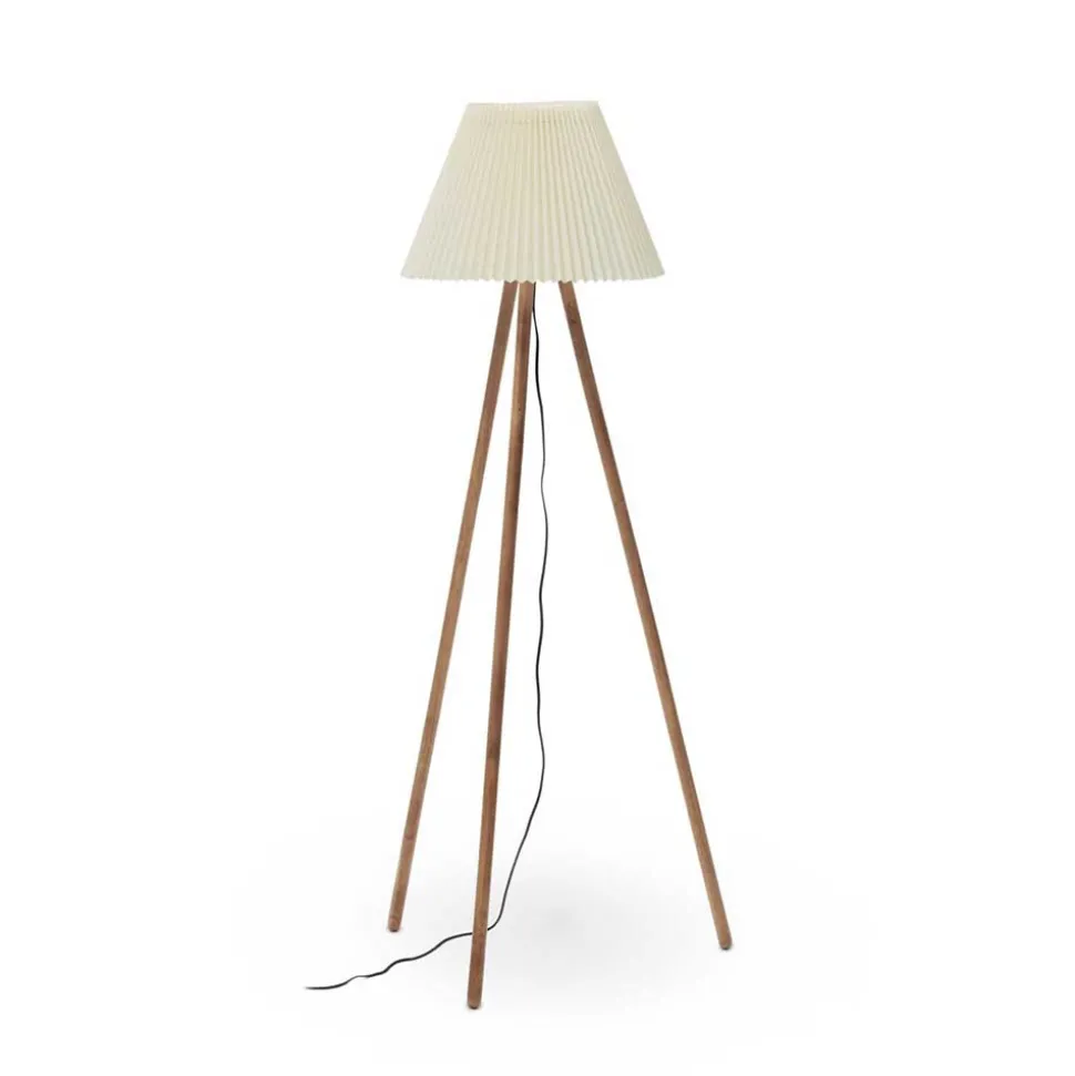 Die Stehleuchte überzeugt nicht nur durch ihr ästhetisches Erscheinungsbild, sondern auch durch praktische Details. Der Schalter am Kabel ermöglicht eine bequeme Bedienung, während das Dreibein-Gestell aus massivem Gummibaumholz für Stabilität und Standfestigkeit sorgt.