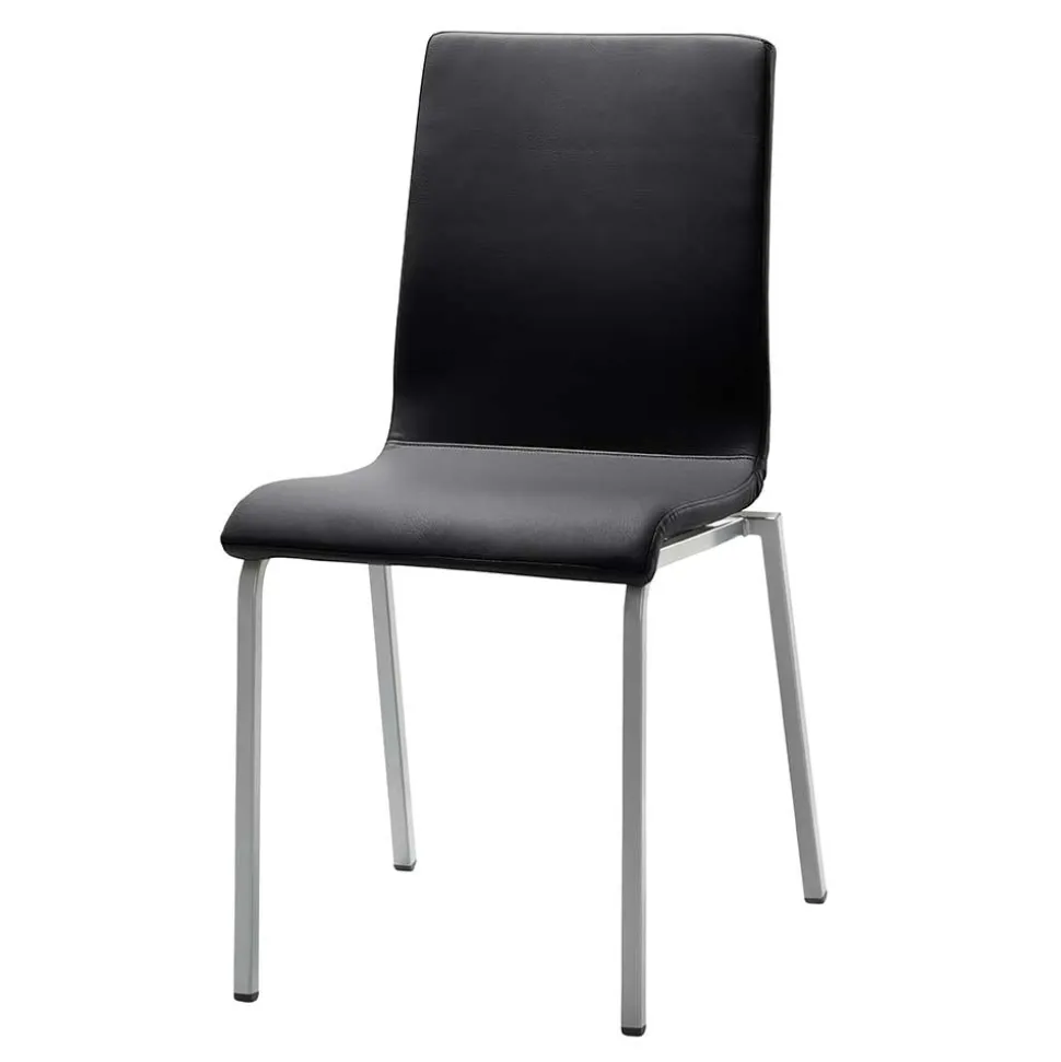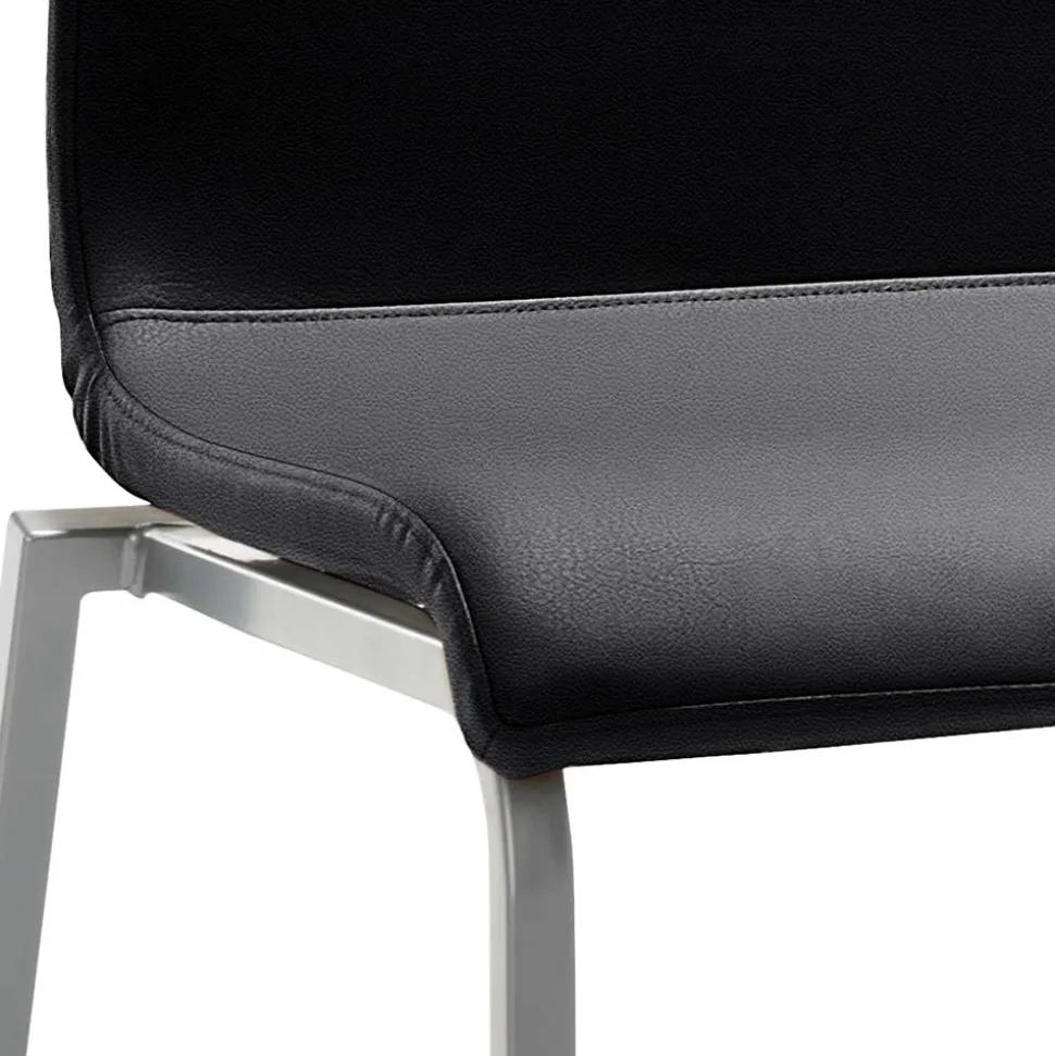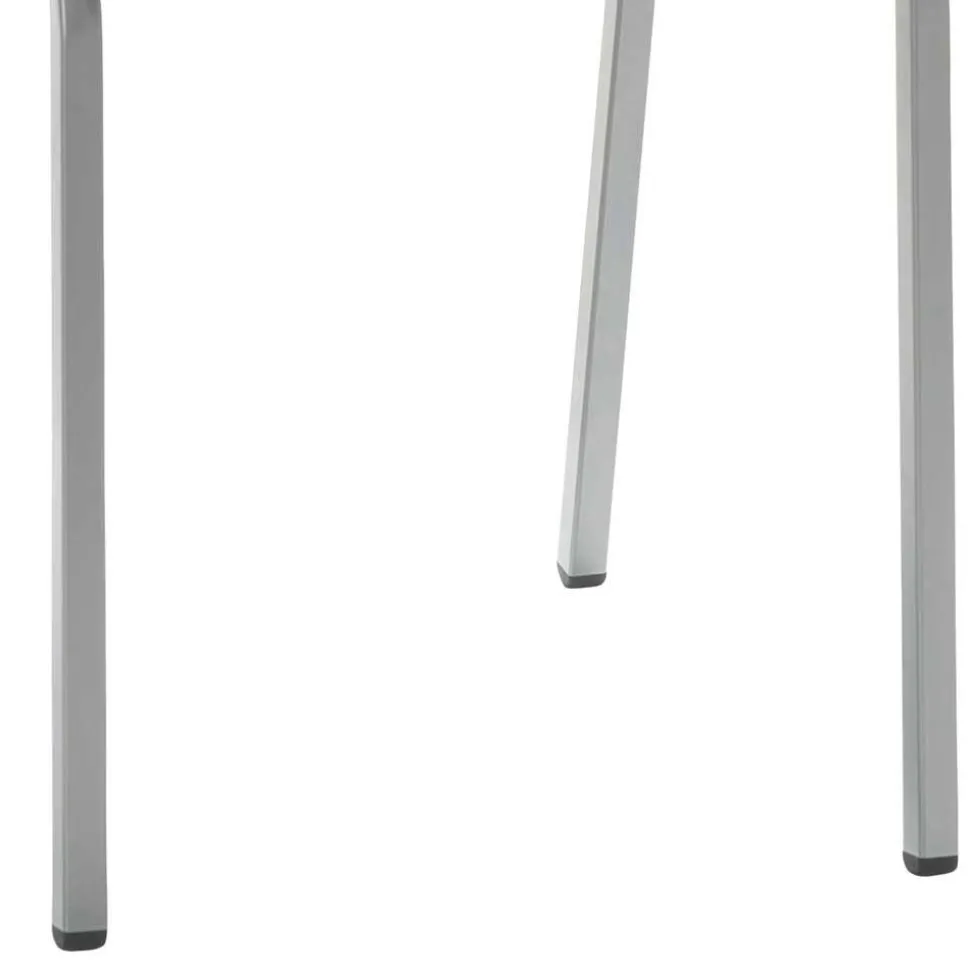 Das Vierkantrohr-Gestell aus perlsilberfarbig pulverbeschichtetem Stahl ist nicht nur optisch ansprechend, sondern auch extrem stabil. Es ist mit Bodenschonern ausgestattet, die Ihre Böden vor Kratzern schützen. Mit einer maximalen Belastbarkeit von 120 kg ist dieser Stuhl besonders langlebig und widerstandsfähig.