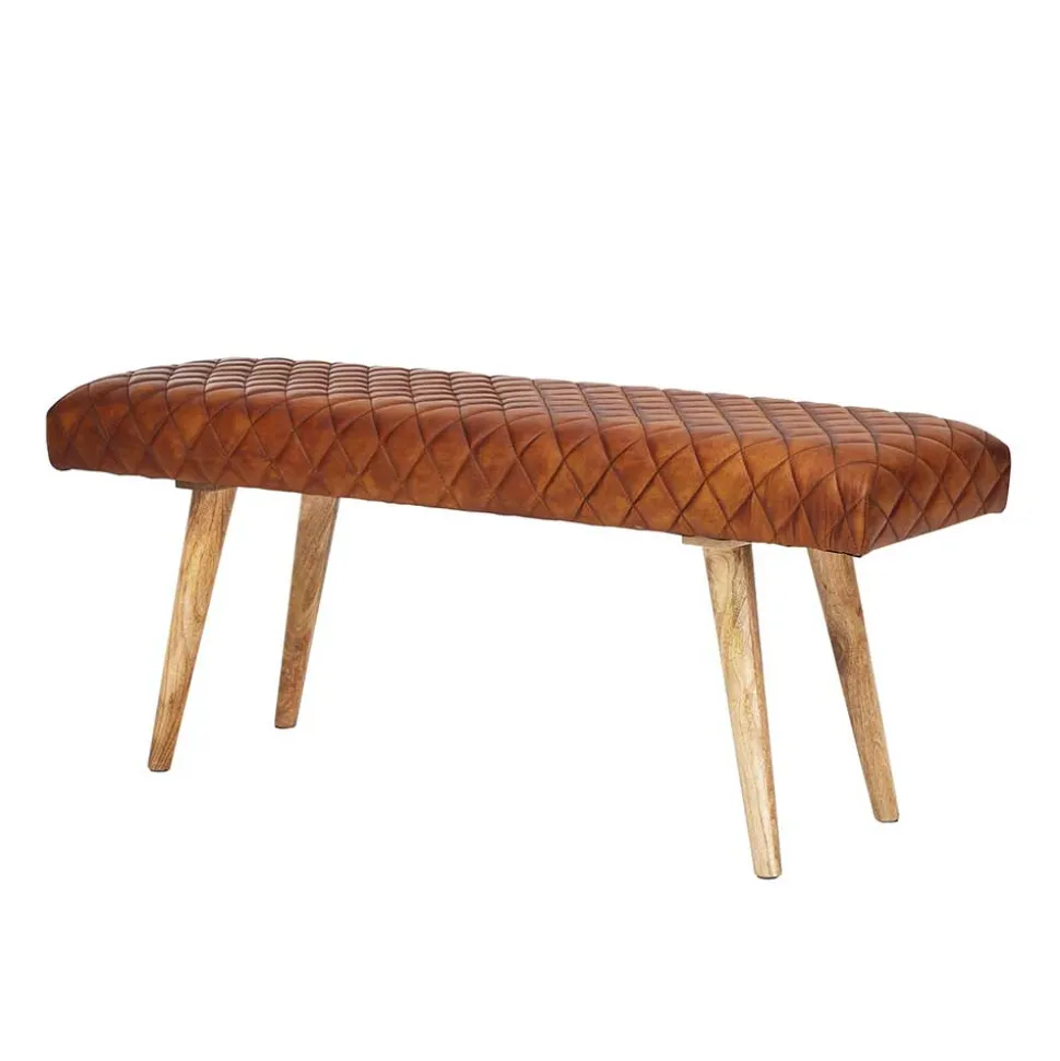 - Klasse Sitzbank in Cognac Braun und Mangoholz Naturfarben