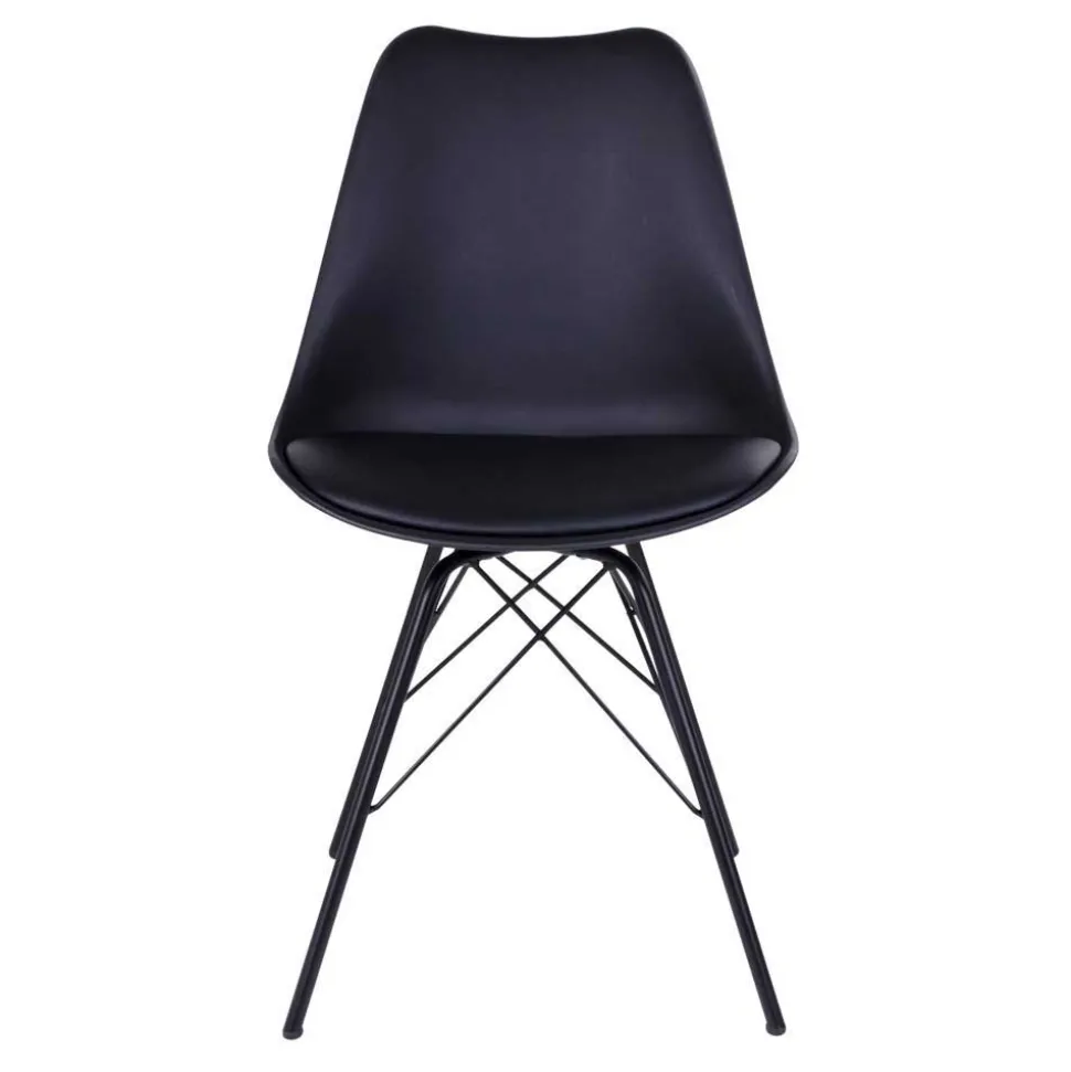 Das filigrane Metallstrebengestell der Stühle bietet eine perfekte Balance aus Leichtigkeit und Stabilität. Schwarz lackiert, verleiht es der Esszimmergruppe eine moderne Note und sorgt für zuverlässige Standfestigkeit. Die Gestelle sind hochwertig lackiert, was nicht nur optisch überzeugt, sondern auch vor Kratzern und Abnutzung schützt. Durch das spezielle Lackierverfahren wird eine widerstandsfähige und pflegeleichte Oberfläche geschaffen, die für viele Jahre Freude bereitet.