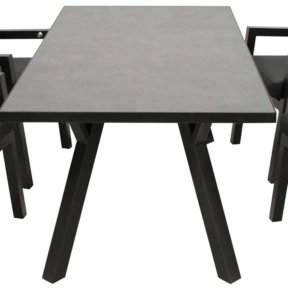 Der großzügige Tisch (B x H x T: 180 x 72 x 90 cm) überzeugt mit einer hochwertigen Tischplatte aus Sicherheitsglas in edler Keramikoptik. Die dunkle Farbgebung verleiht ihm eine exklusive Note, während die stabile Aluminium-Konstruktion mit Metallgestell für maximale Stabilität sorgt. Genießen Sie Ihre Mahlzeiten im Freien auf einer robusten und pflegeleichten Oberfläche, die jeder Witterung standhält.