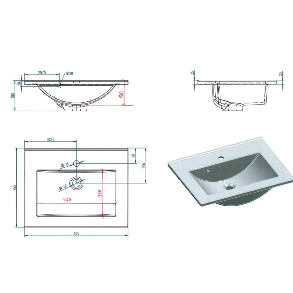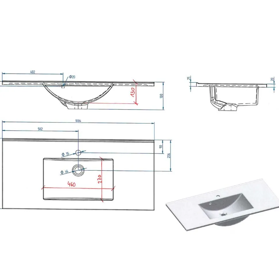 - Pflegeleichtes Mineralgussbecken in Weiß inklusive, Lieferung ohne Armaturen, Löcher zur Montage der Armaturen bereits vorgefertigt