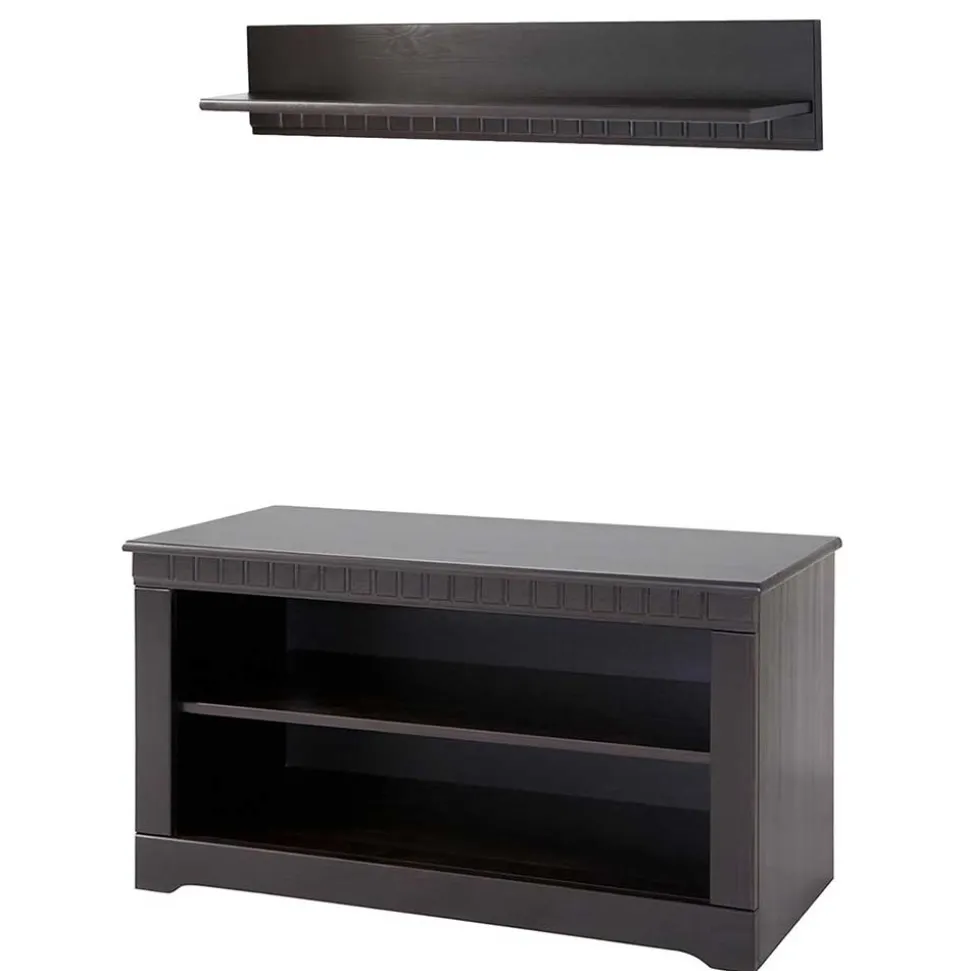 Das Set ist aus robustem Kiefer Massivholz gefertigt, das für seine Stabilität und natürliche Schönheit bekannt ist. Die Oberflächen wurden in einem dunklen Braunton lackiert und teils mit dekorativen Zierfräsungen versehen, die dem Möbelstück einen besonderen Charme verleihen. Die Rückwand des Wandboards besteht aus strapazierfähigem MDF, das für zusätzliche Robustheit sorgt und gleichzeitig eine moderne Optik bietet. So erhalten Sie ein Möbelstück, das sowohl funktional als auch optisch ansprechend ist.