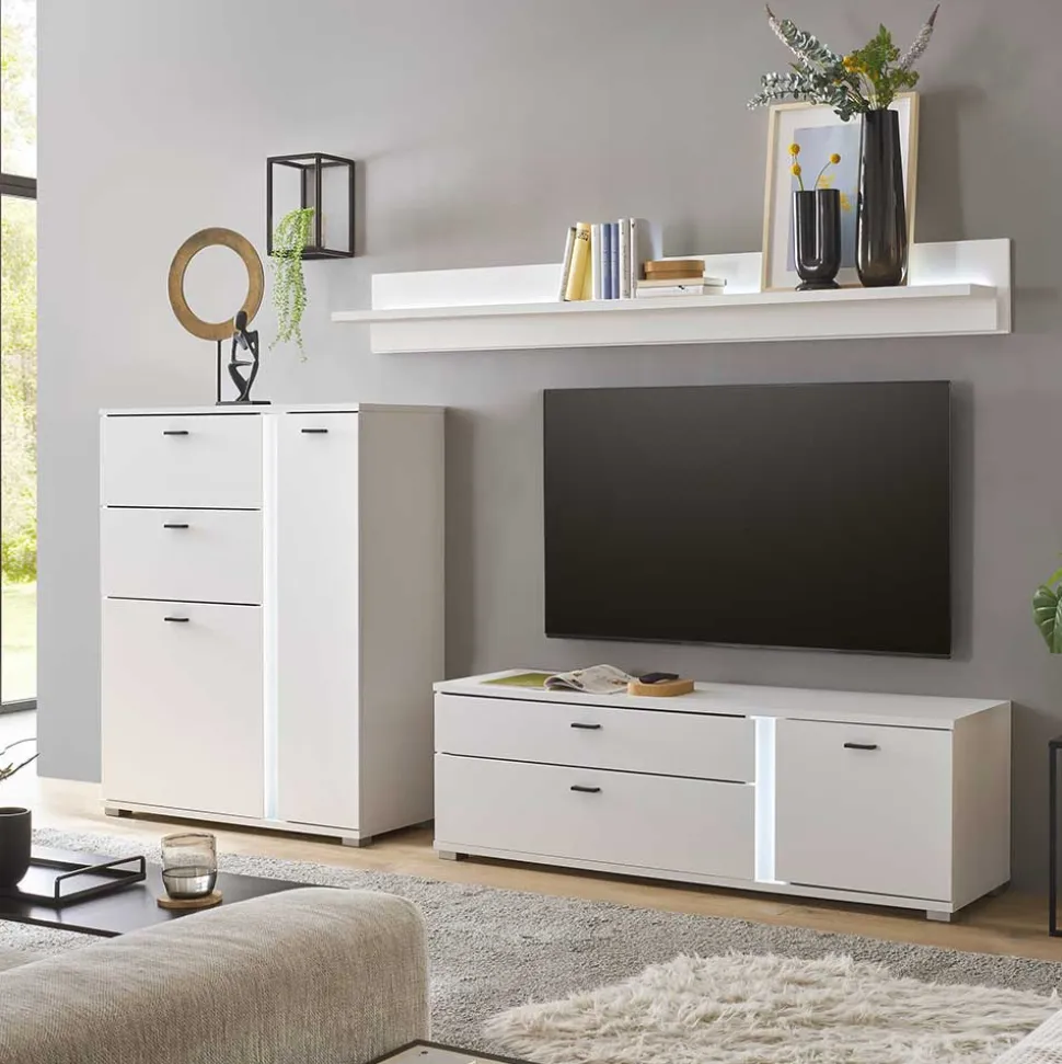 TV Wohnwand beleuchtet Möbelset – Tirol (dreiteilig)