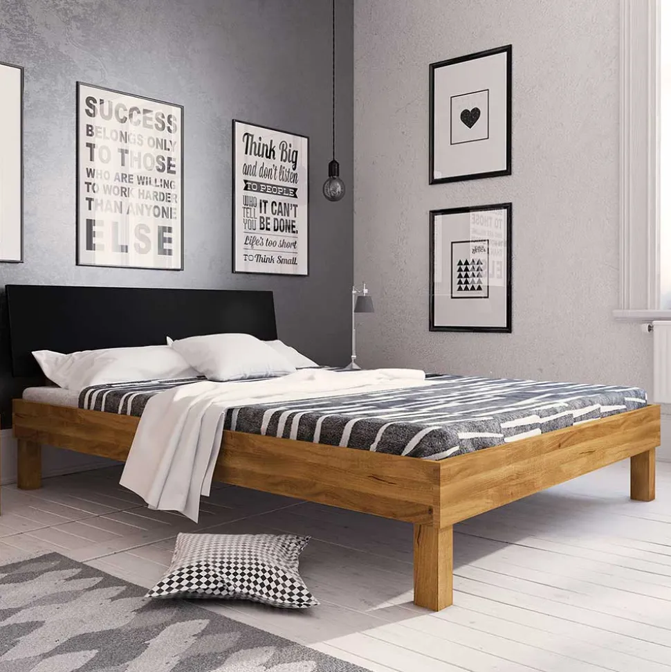 - Einzigartiges Bett in Wildeichefarben und Schwarz