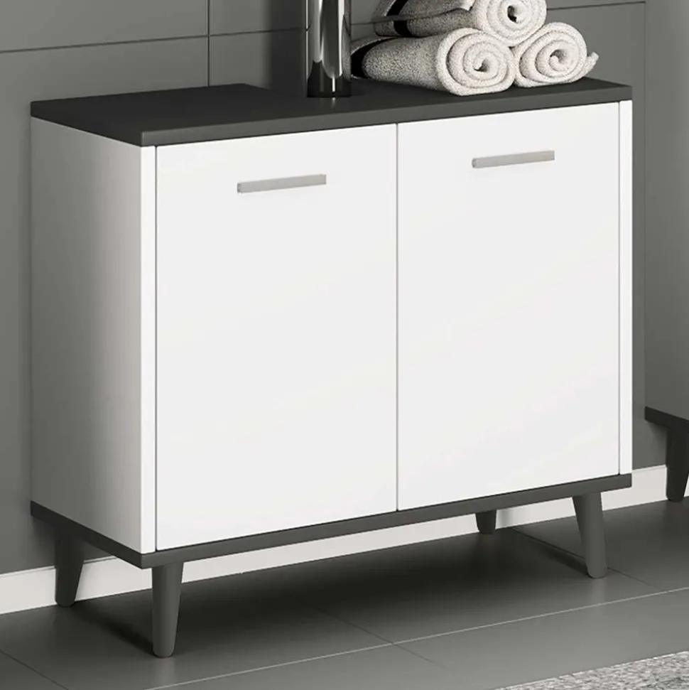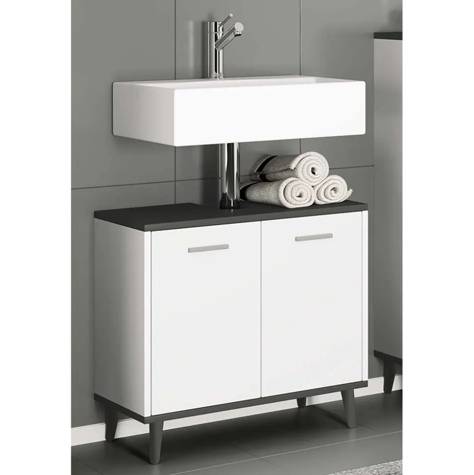 - Trendstarker Unterbeckenschrank in Weiß und Anthrazit