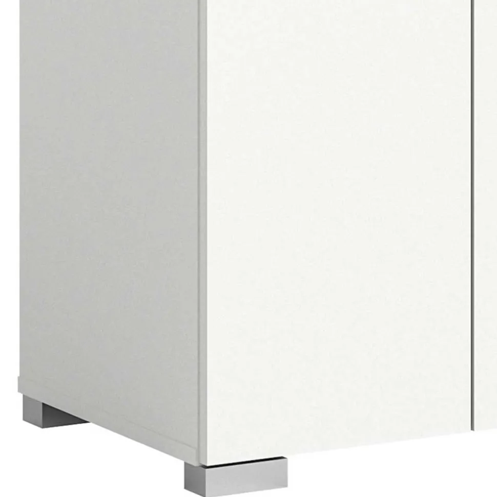 Die unauffälligen Griffmulden und die stabilen Kunststofffüße unterstreichen das moderne Design des Schuhschranks und sorgen gleichzeitig für eine einfache Handhabung und Standfestigkeit. Damit der Schuhschrank sicher an seinem Platz bleibt, wird eine Wandsicherung empfohlen, die ein Umkippen verhindert.