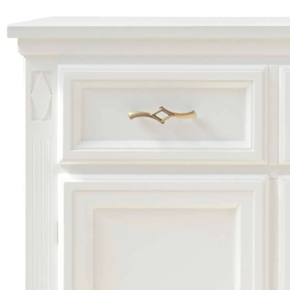 Gefertigt aus hochwertigem Holzwerkstoff und mit echtem Holzfurnier versehen, besticht dieses Möbelstück durch seine raffinierte Verarbeitung. Die lackierte Oberfläche unterstreicht die klassische Optik, während die dekorativ gestalteten Metallgriffe in Goldfarben edle Akzente setzen. Liebevolle Details wie Zierleisten und feine Fräsungen machen das Vertiko zu einem besonderen Blickfang.