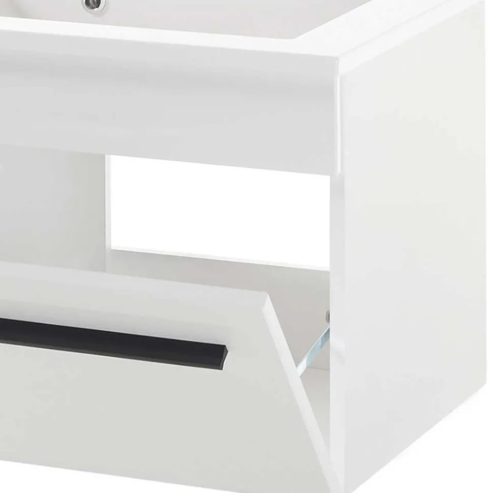 - Front hochglänzend weiß foliert und tiefgezogen, Korpus melaminbeschichtet