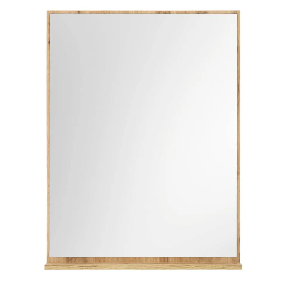 Der Spiegel besteht aus strapazierfähiger Spanplatte mit einer pflegeleichten Oberfläche in Wildeiche-Holzoptik. Die Beschichtung sorgt für eine authentische Maserung und angenehme Haptik, während das Spiegelglas eine klare Reflexion bietet. Die Kombination aus Holzwerkstoff und Glas schafft ein langlebiges Produkt, das auch bei täglicher Nutzung seine Qualität bewahrt.