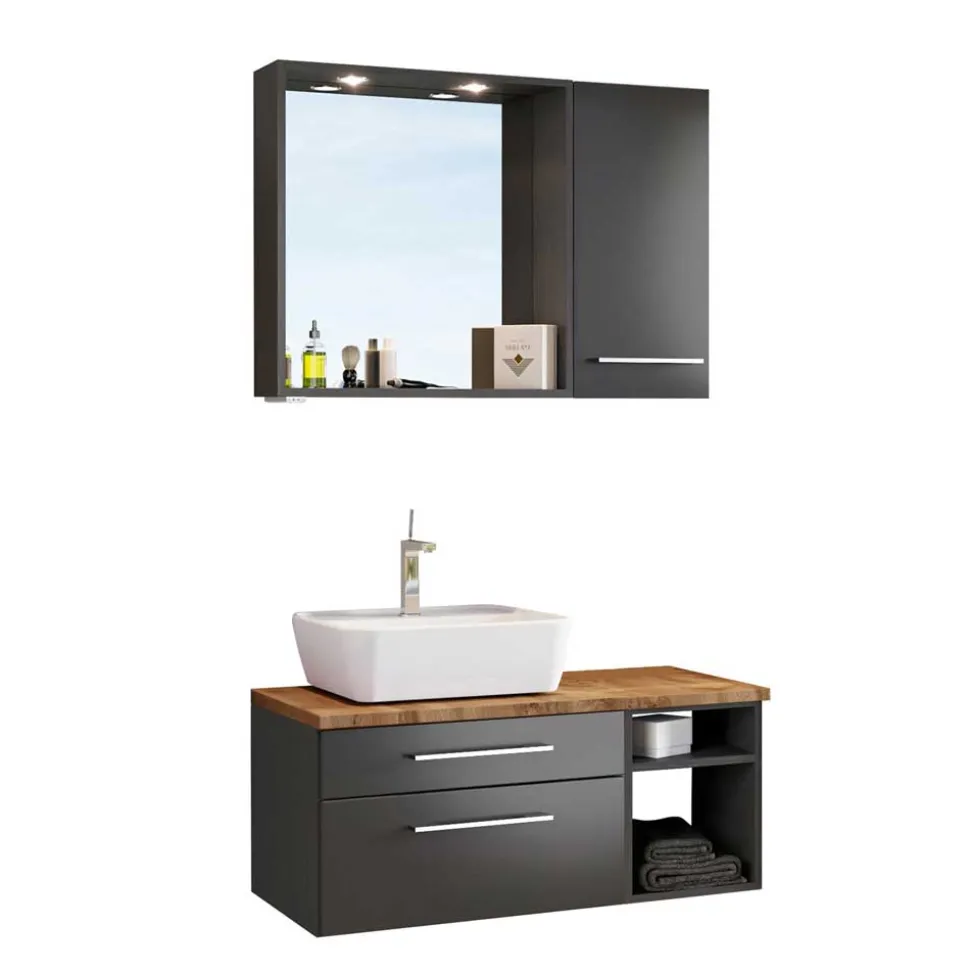 - Stilvolles Badmöbel Set in dunkel Grau und Wildeichefarben